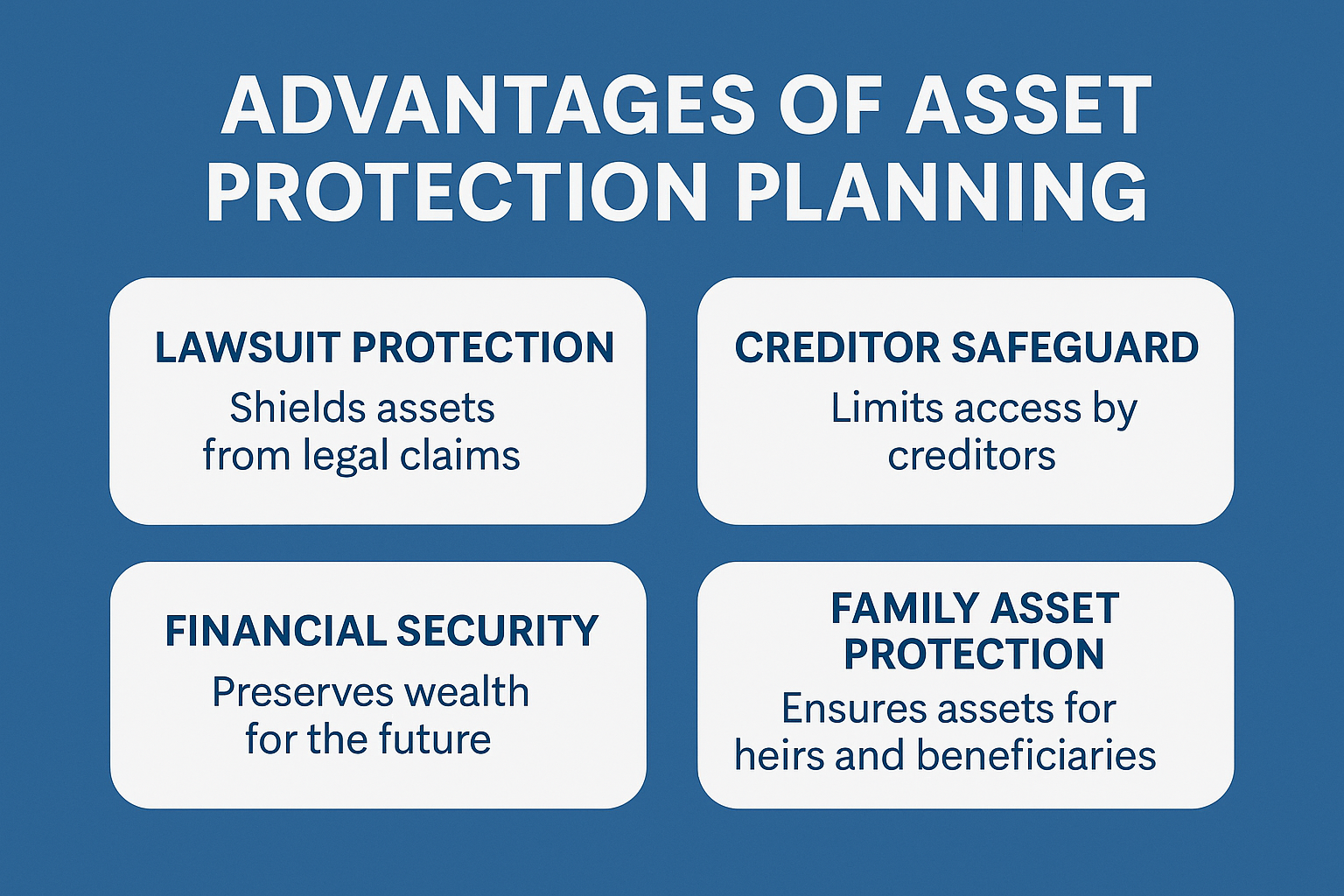 Whether you are a business owner, professional, or retiree, effective asset protection planning provides essential long-term benefits. It preserves your wealth, shields your assets from potential litigation, and helps ensure lasting financial stability for you and your family.